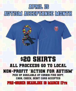 The Corbin Fire Department is taking pre-orders on shirts with a new design promoting April as Autism Acceptance Month.