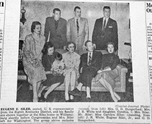 “When the 84th Congress convened in Washington yesterday, Judge Eugene E. Siler took the oath of office as Representative of the Eighth District of Kentucky,” the story said. “With the exception of the late Charles Finley, who served a part-term in the House, a Williamsburg man represents the district for the first time in 70 years. He is the third in the history of the county.”