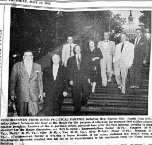 That summer, Siler publicly voiced opposition to an Atomic Reactor Bill that was under consideration in the House of Representatives, citing concern for the livelihood of the many coal mining families that resided in his district, and others.