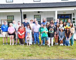 Chief Administrative Officer Mike Noftsger poses with a large group of guests outside of the banquet hall at Heart of Grace Farm.