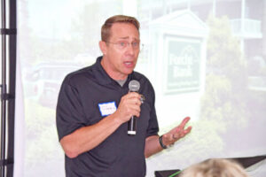 Forcht Bank President and CEO Tucker Ballinger addresses the crowd during a short presentation prior to lunch being served.