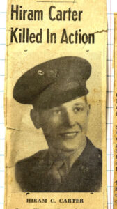 Corporal Hiram Cawood Carter was just 19-years-old when he was killed while serving in Italy in October of 1944. A newspaper clipping that was passed down to Burkhart by her mother, Ruth, said that Carter was serving with the U.S. Army’s Company K, 349th Infantry Regiment, 88th Division. The clipping also noted that he was a senior at the old Hall High School in Harlan at the time of his enlistment.