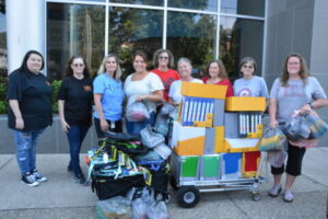 Members of UE Local 728, a chapter of the United Electrical, Radio and Machine Workers of America that help maintain operations at the Kentucky Consular Center in Williamsburg, made a large donation of school supplies to the Whitley County School District on Monday afternoon. The donation included $1,000 worth of supplies that students in the district are most in need of. According to Melissa Sergent-Hamblin, treasurer of UE Local 728, the union has provided school supplies to local school districts for the past four year. The supplies are paid for with money using member dues, which requires a majority vote by members. Family resource personnel from throughout the district were also on hand to accept the donation.
