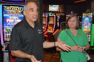 The Mint Gaming Hall held an informational meet-and-greet tour with members of the regional media last Wednesday at the Cumberland location in Williamsburg. During the tour, John Wholihan (left) director of marketing for The Mint, walked media members throughout the building highlighting the gaming hall’s different ameneties while also providing in-depth information on how the games featured at the gaming hall work.