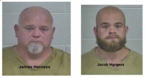 Jacob Harness has been charged with fourth-degree assault. James Harness has been charged with first-degree wanton endangerment and second-degree disorderly conduct. Both men have been jailed in the Laurel County Correctional Facility.