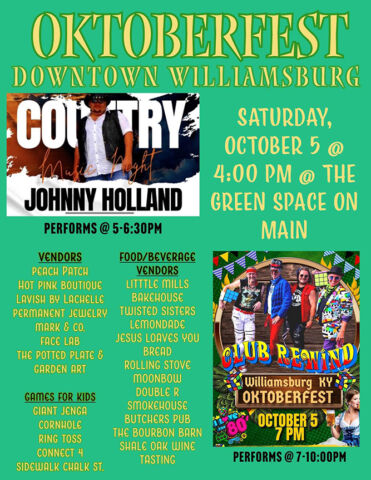 There are several events being held this weekend in both Williamsburg and other nearby communities. Among the selections this weekend, the second annual Oktoberfest at the Green Space on Main in downtown Williamsburg is shaping up to be a good time for all.