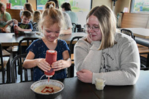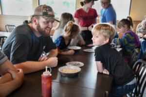 Kindergarteners and seniors from Williamsburg Independent School came together at the Williamsburg Pizza Hut on Tuesday to assemble pizzas with one another. Each year, students from each of those grade levels get a “buddy” that they interact with throughout the school year, which culminates with the annual grad walk through the halls of the school. For the second year in a row, the school partnered with Pizza Hut to allow the buddies to participate in the pizza-making event, which was hosted free of charge by the restaurant.