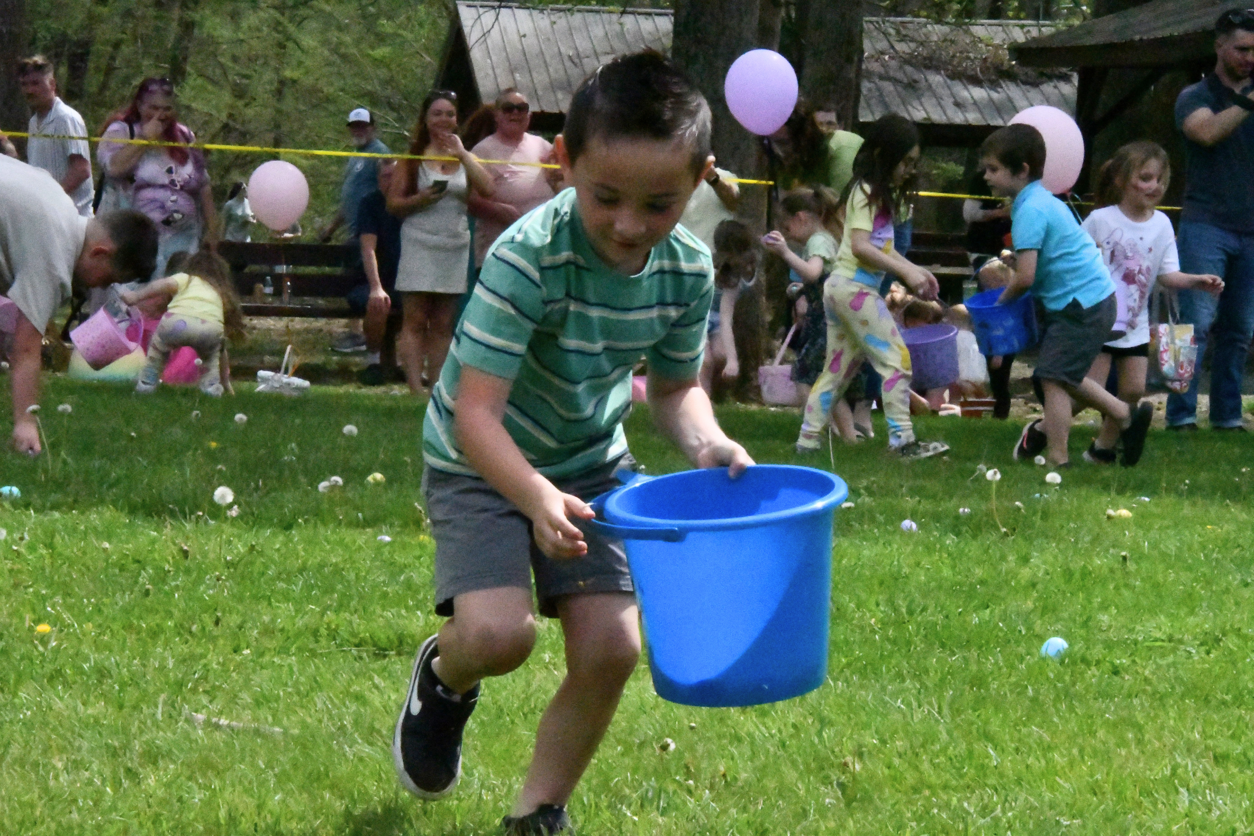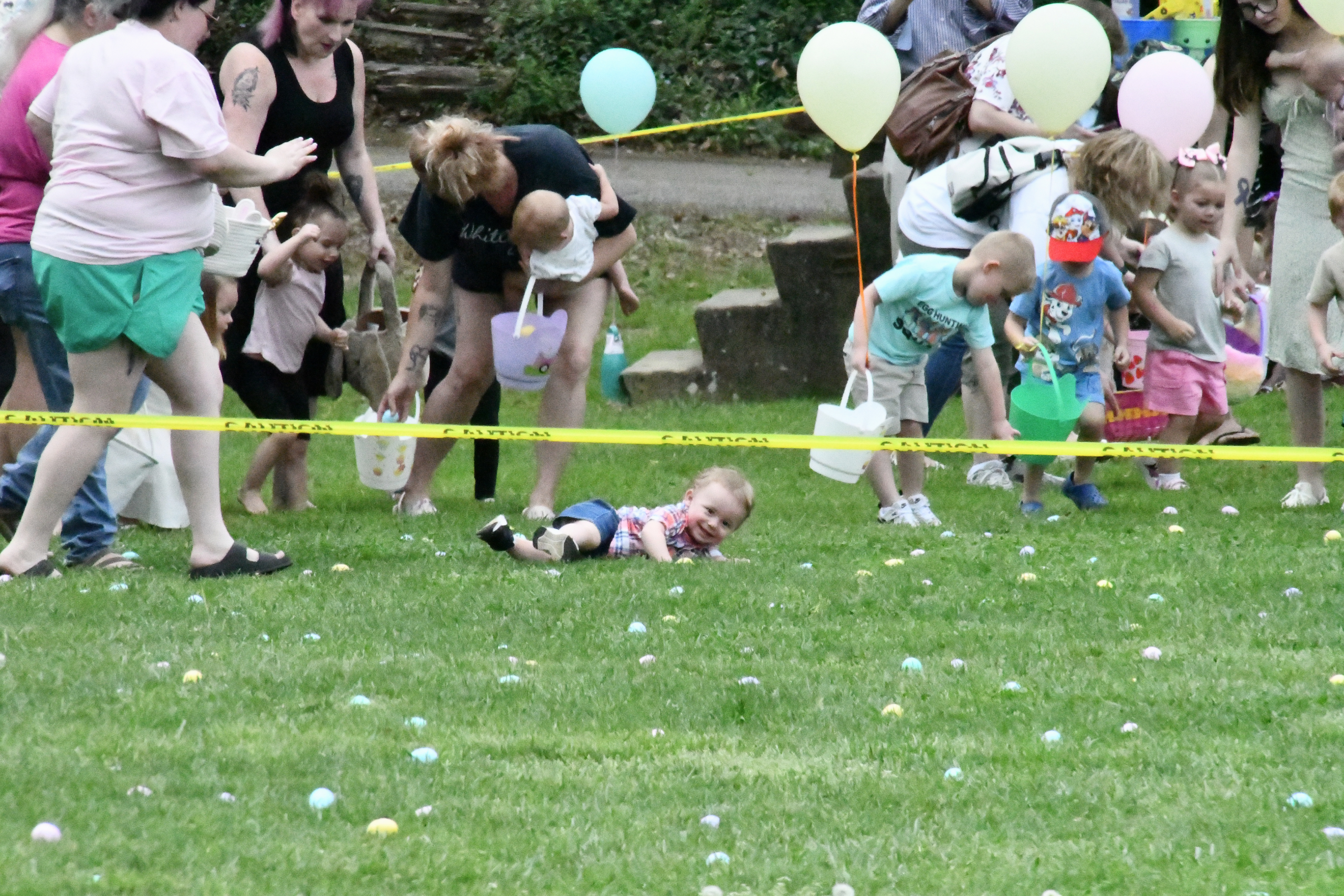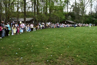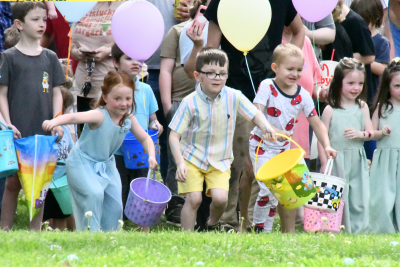 Mayor Roddy Harrison organized the egg hunt by age group, giving younger children the first chance to search before opening the field to older kids.